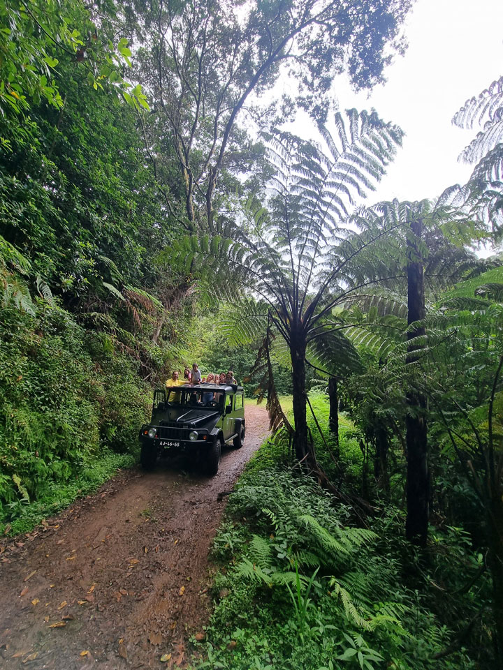 During the Offroad, we will have the chance to see numerous tree varieties, highlighting the laurel trees, lily of the valley trees, and Australian tree ferns, which bring to mind the settings of Jurassic Park.