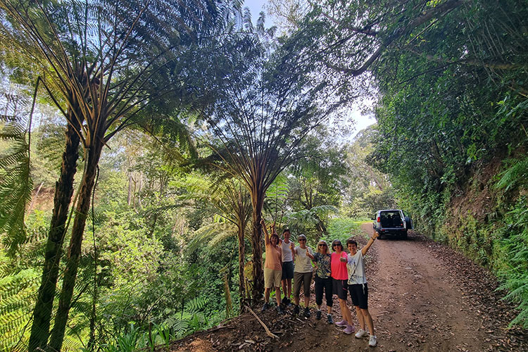 Au cours de cette excursion hors-piste, nous aurons l'occasion d'admirer de nombreuses variétés d'arbres, notamment des lauriers, des mugues et des fougères arborescentes australiennes, évoquant les décors de Jurassic Park.