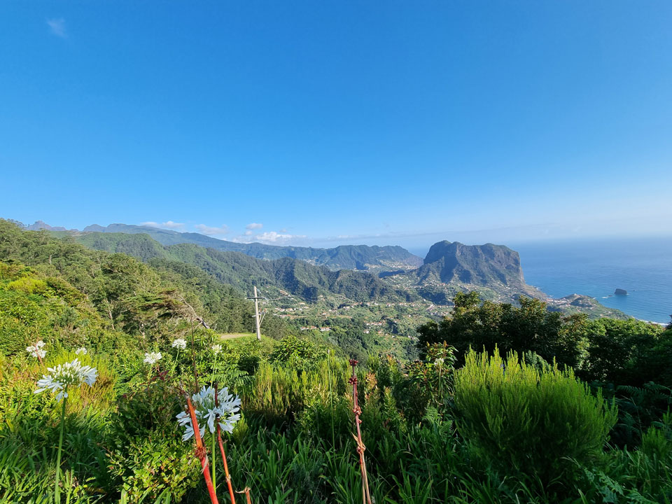 Après cette agréable et originale excursion hors-piste, nous serons accueillis par un point de vue exceptionnel offrant un panorama époustouflant sur Porto da Cruz et Faial, avec Penha D'Águia en son centre.